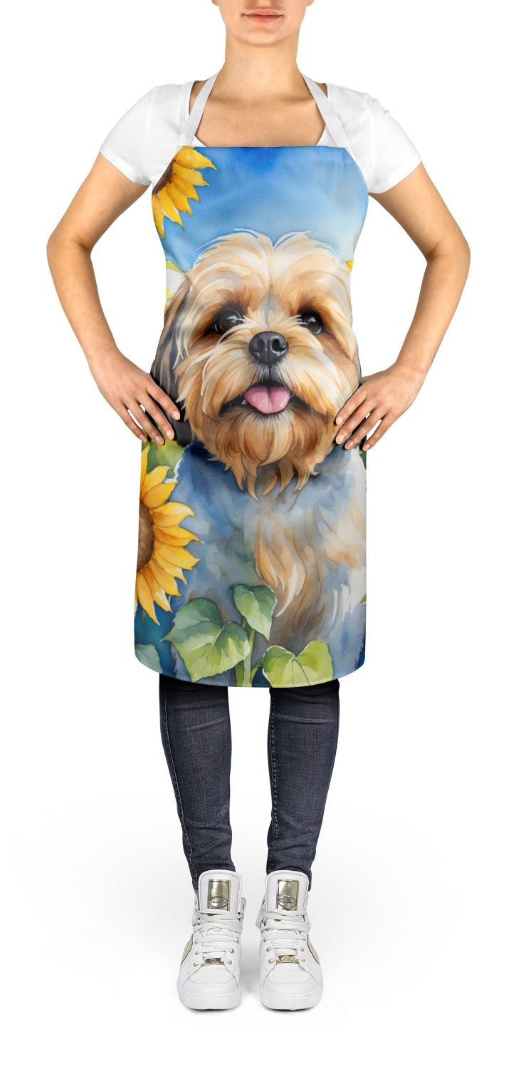 Lhasa Apso in Sunflowers Apron Cooking Kitchen Server Baking Crafts Gardening for Adult Women Men, Unisex, Large, Multicolor