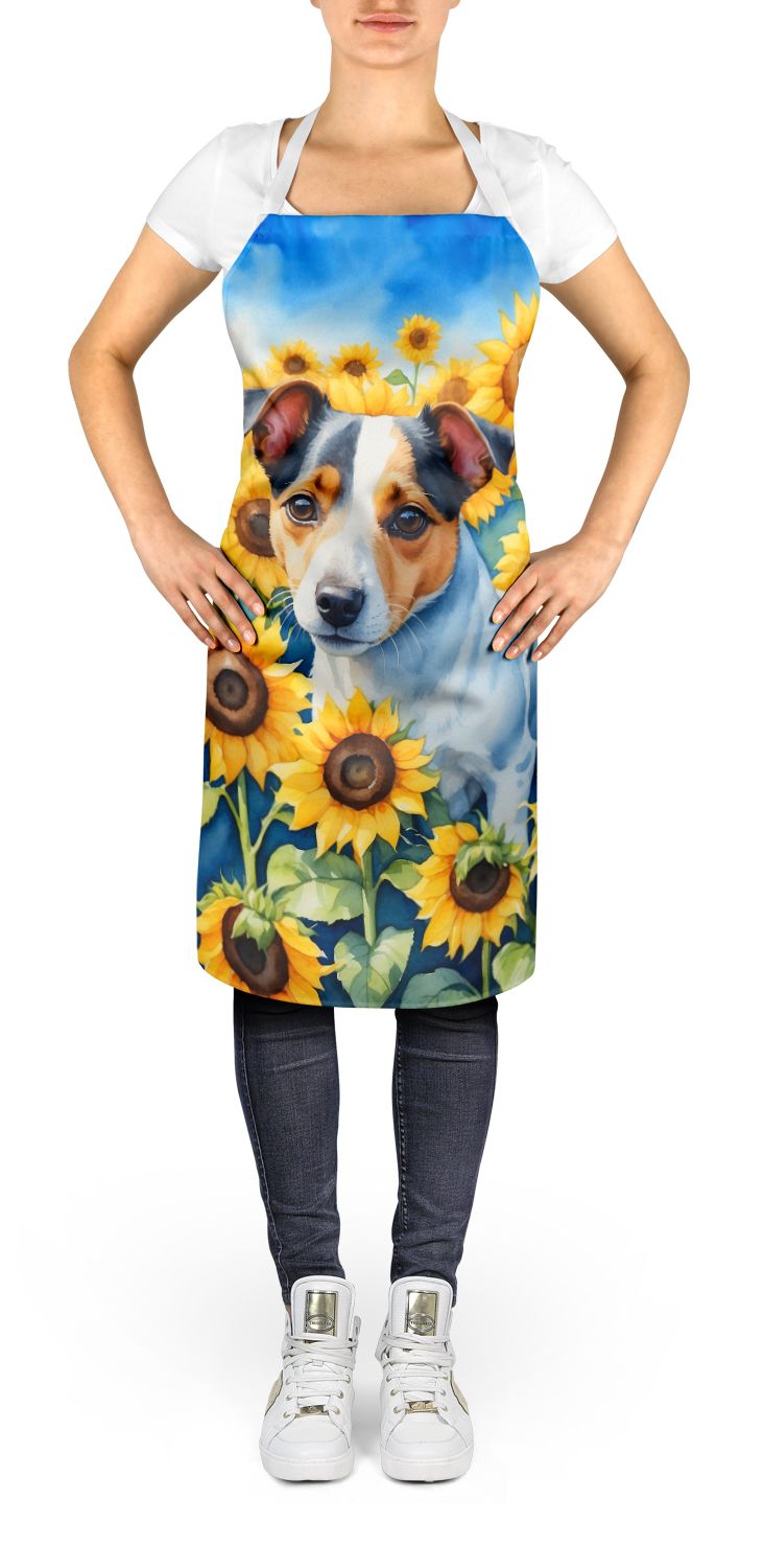 Jack Russell Terrier in Sunflowers Apron Cooking Kitchen Server Baking Crafts Gardening for Adult Women Men, Unisex, Large, Multicolor