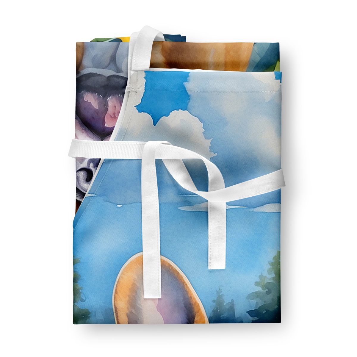 Apron featuring breed specific French Bulldog artwork. Elevate your cooking, baking, and grilling experiences with our versatile Kitchen or BBQ Apron. This Bib Style apron isn't just limited to culinary activities - it also serves as an excellent baking apron, artist apron, server apron, gardening apron, or even a dog grooming apron. The apron showcases vibrant full-color artwork contributed by one of our talented artists, bringing a dash of style to your daily tasks. With dimensions of approximately 27"W x 30"H, it provides ample coverage to protect your clothing from spills and splashes. Our apron is meticulously crafted from 100% Ultra Spun Polyester, known for its durability and lightweight nature. The apron comes with white tie straps, ensuring a comfortable and adjustable fit for all. It's a perfect choice for kitchen apron enthusiasts, whether you are a woman or a man. Designed for easy maintenance, this apron is fully machine washable. The quick-drying polyester material actively reduces staining, keeping your apron looking fresh and new for longer. Our beautifully designed apron isn't just a functional kitchen accessory - it's a fashion statement in the culinary world!