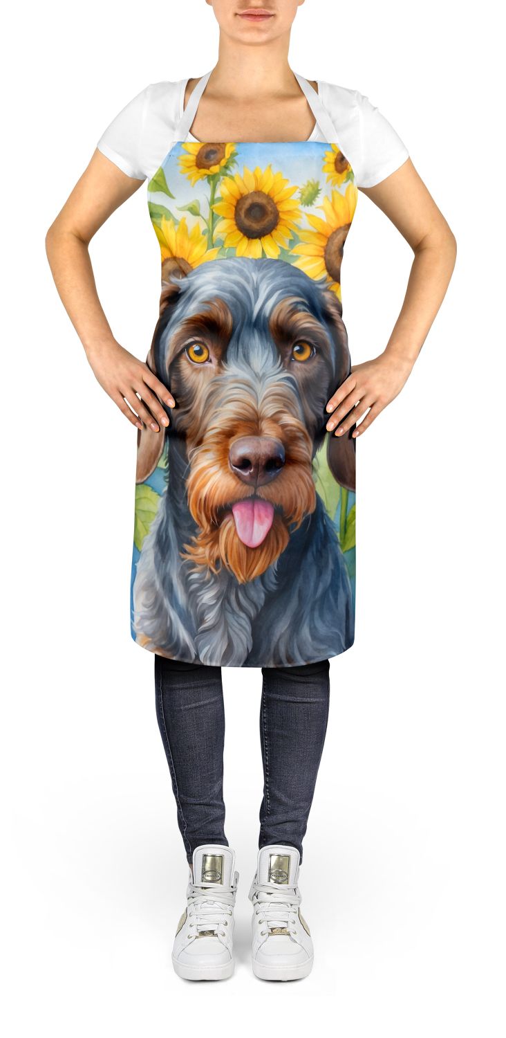 German Wirehaired Pointer in Sunflowers Apron Cooking Kitchen Server Baking Crafts Gardening for Adult Women Men, Unisex, Large, Multicolor