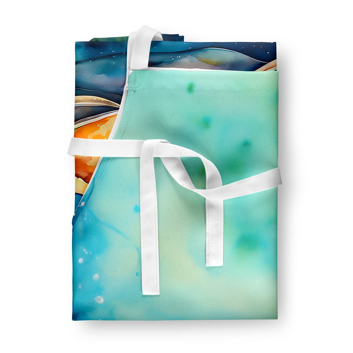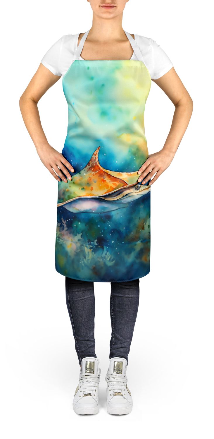 Apron featuring breed specific Sting Ray artwork. Elevate your cooking, baking, and grilling experiences with our versatile Kitchen or BBQ Apron. This Bib Style apron isn't just limited to culinary activities - it also serves as an excellent baking apron, artist apron, server apron, gardening apron, or even a dog grooming apron. The apron showcases vibrant full-color artwork contributed by one of our talented artists, bringing a dash of style to your daily tasks. With dimensions of approximately 27"W x 30"H, it provides ample coverage to protect your clothing from spills and splashes. Our apron is meticulously crafted from 100% Ultra Spun Polyester, known for its durability and lightweight nature. The apron comes with white tie straps, ensuring a comfortable and adjustable fit for all. It's a perfect choice for kitchen apron enthusiasts, whether you are a woman or a man. Designed for easy maintenance, this apron is fully machine washable. The quick-drying polyester material actively reduces staining, keeping your apron looking fresh and new for longer. Our beautifully designed apron isn't just a functional kitchen accessory - it's a fashion statement in the culinary world!