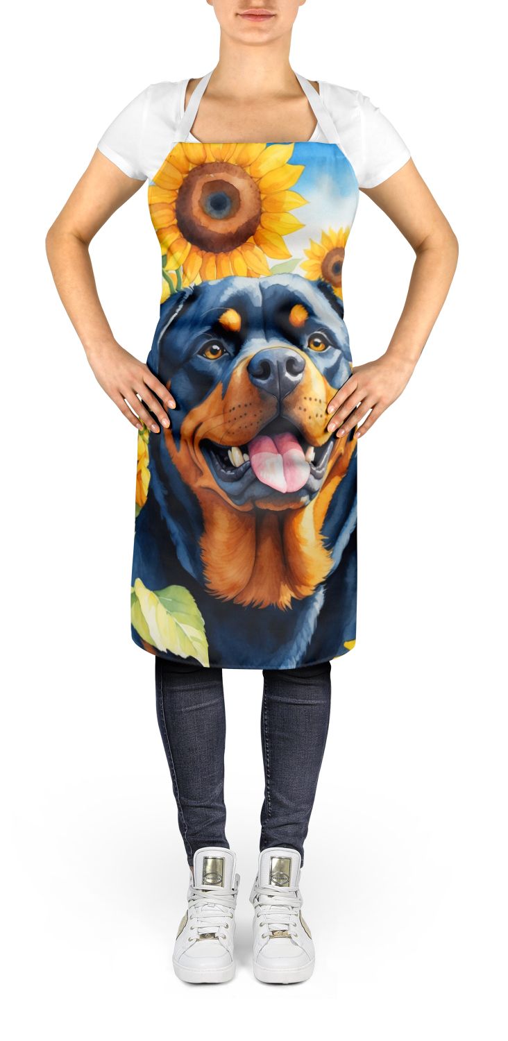 Rottweiler in Sunflowers Apron Cooking Kitchen Server Baking Crafts Gardening for Adult Women Men, Unisex, Large, Multicolor