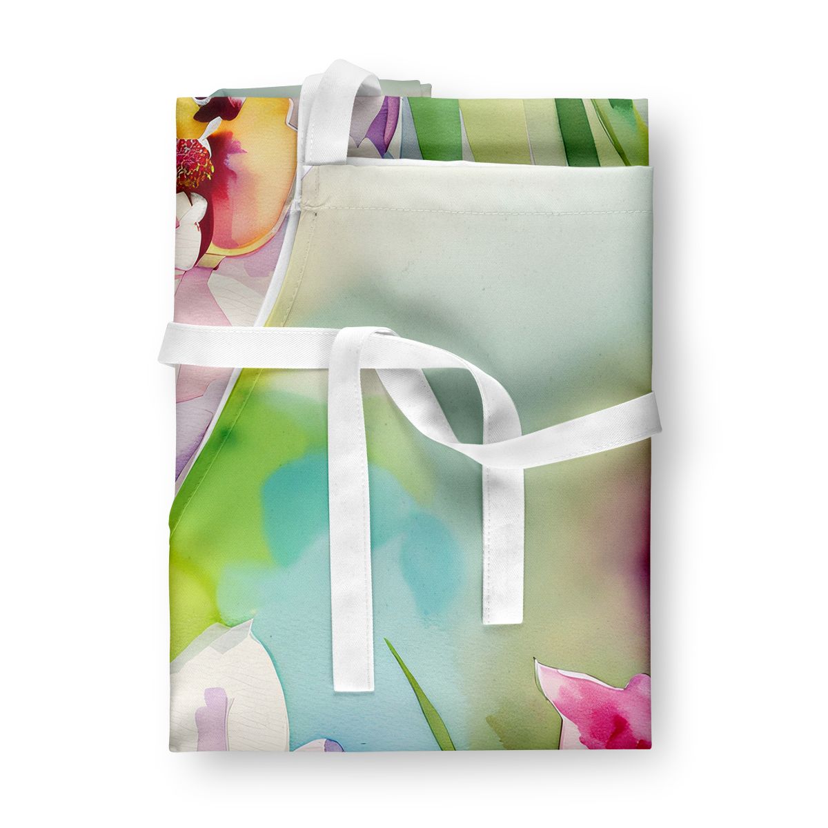 Orchids in Watercolor Apron Cooking Kitchen Server Baking Crafts Gardening for Adult Women Men, Unisex, Large, Multicolor